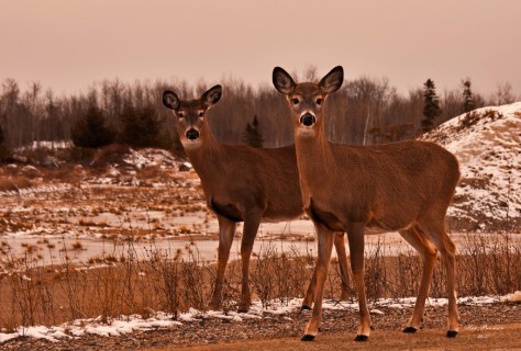Living in the Beaver Lake area West of Sudbury, I am in prime White-Tail deer habitat. This locale consists of cultivated fields as well as abandoned fields.Up in the hills grow oak trees supplying acorns in season.The deer have flourished quite well here.There biggest danger is getting hit by oncoming traffic at night.