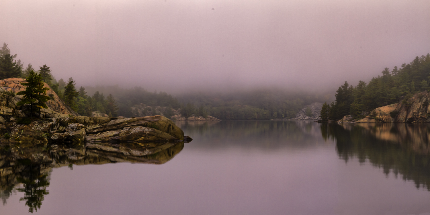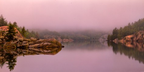 I picked up Paul Smith at 5:30 am.We arrived at George Lake in Killarney Provincial Park to a calm foggy morning.A photographer’s dream.The lighting was great,the colors were saturated along with the fog to create that mystic mood.The only thing missing was the fall colors.It seems that we may be a week or so from peak color.