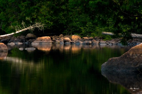 I continued walking upstream and I noticed some unique lighting ahead of me that you see in the photo above.The problem was that the background was very dark and the right shoreline was brightly lit.I set up the camera and tripod and created the composition you see above.I set the exposure for the sandbar and took a photo and then I took a exposure on the background and took a photo at that setting.This allowed me to bring both photos into Photoshop and achieve what I was looking for.