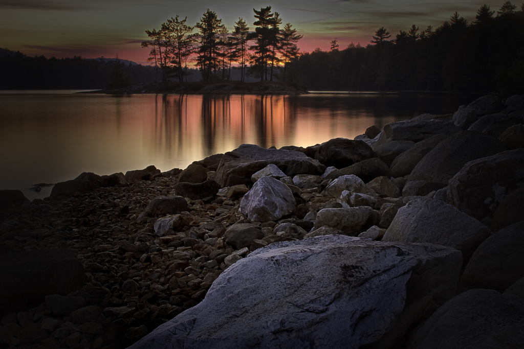 The canoe was launched after supper to explore the lake. Concluding our trip around the lake I was of the opinion that we had our work cut out to obtain any good photographic works. With the sun gone down and darkness descending we were soon nestled in our sleeping bags for the night.