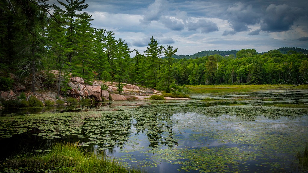 The foreground is now darker now that the sun is been blocked by trees and rocks on the left