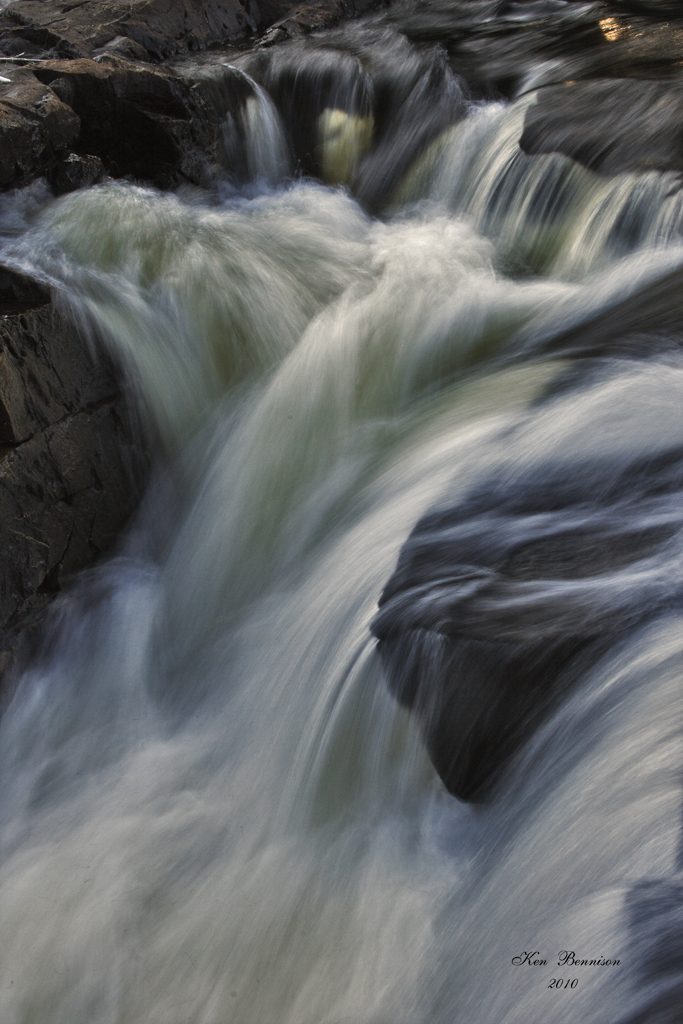 The last photo was taken of one of the waterfalls on the Duchesnay water system.The waterfalls was a fairly decent drop and I wanted a tight shot with the leaves creating a frame.I set this shot up so that I had rocks in the foreground to created depth .The zoom was set at 44 mm.The shutter speed was at 1/5 sec @ f22.