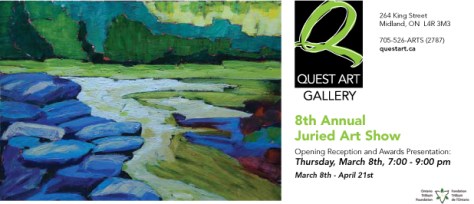 I had not been to Midland since Quest Art’s last show in 2012. Since then, they had moved to their new location. It is a beautiful location and spacious. We enjoyed a nice evening and met a few people that we chatted with. We had a wonderful chat with Hazel Ferry. Hazel was a volunteer for the night. She is a wonderful painter in watercolours. Hazel can be reached at her email.